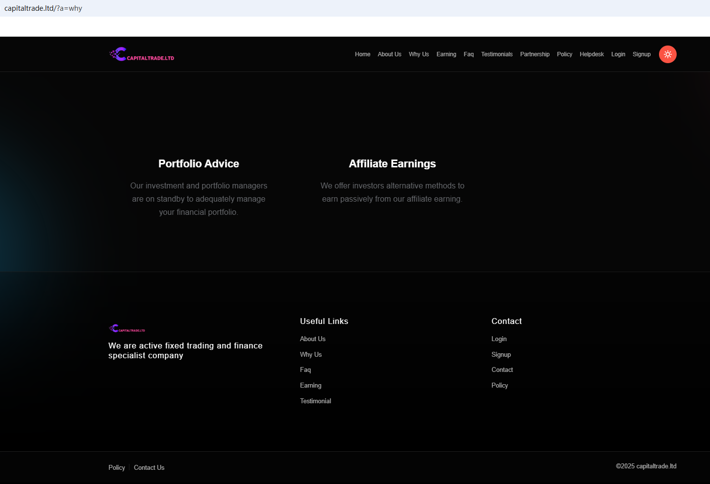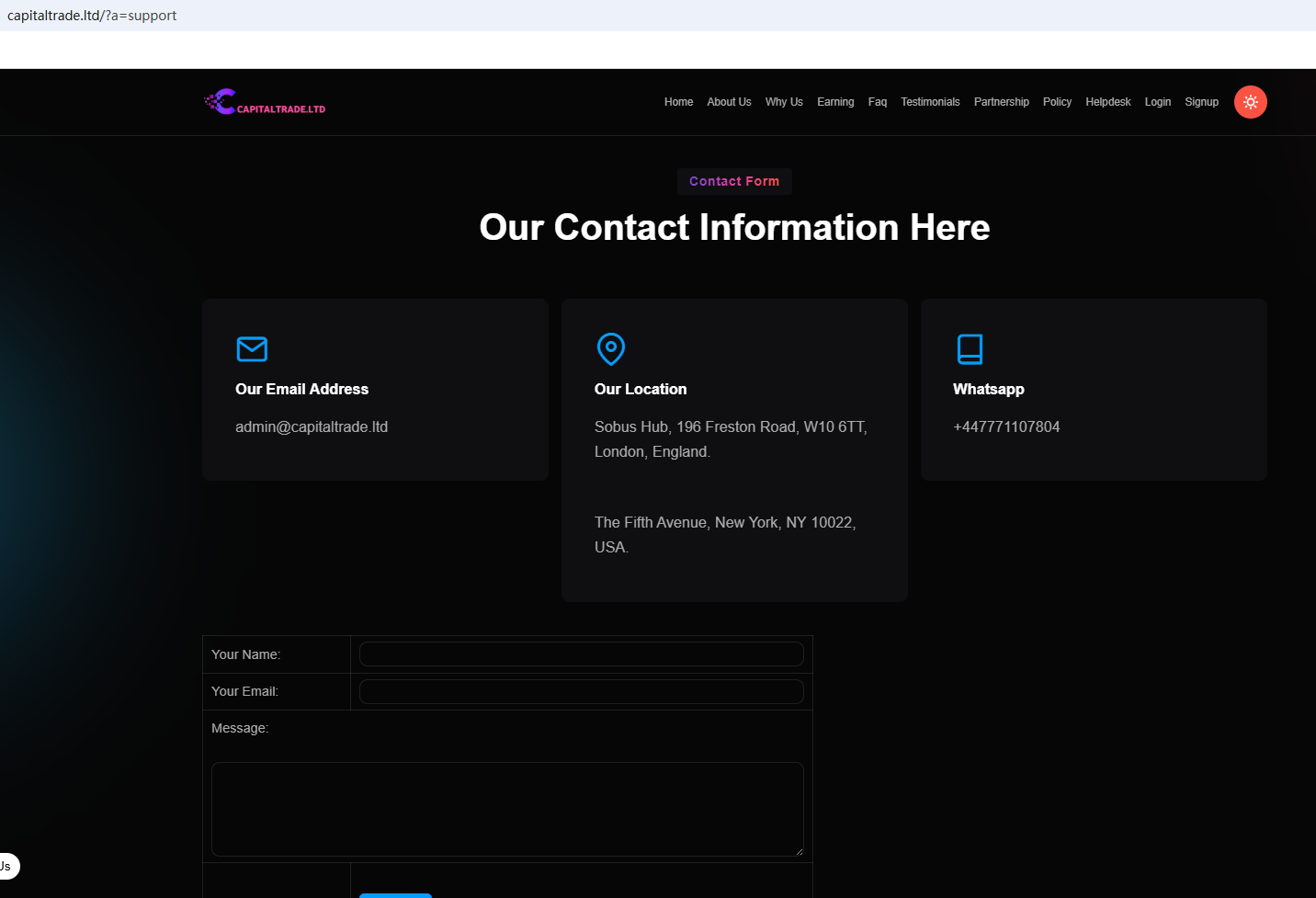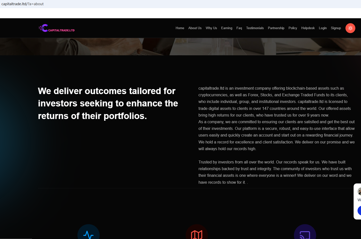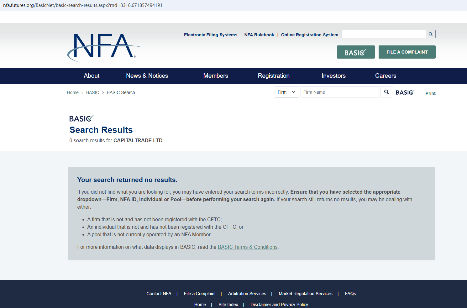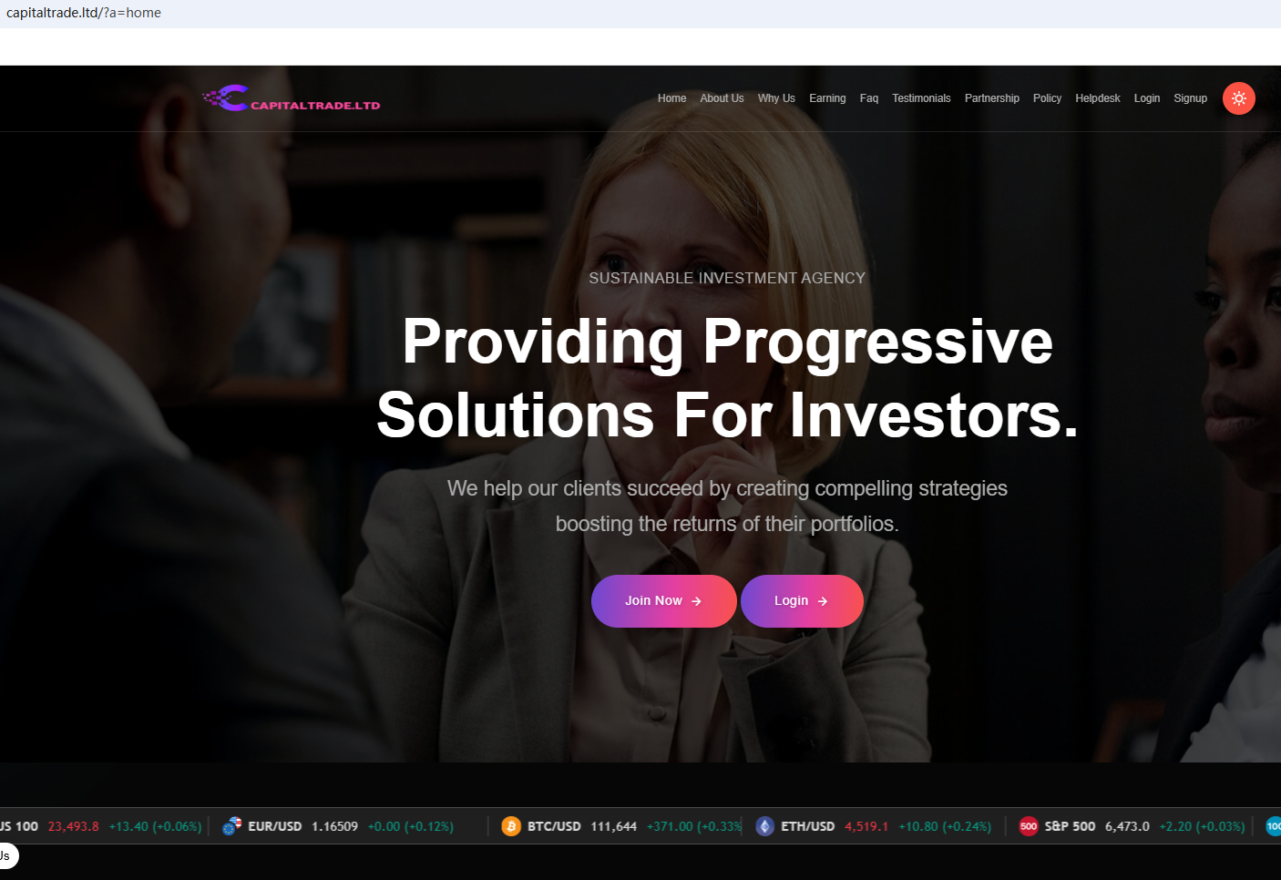 - Aug 27, 2025 BrokersView has found that capitaltrade.ltd appears to be a scamAccording to its website, it has offices in both the UK and the US. However, a search did not find any matching information with the National Futures Association (NFA). Furthermore, we discovered that the Financial Conduct Authority (FCA) issued a warning against capitaltrade.ltd, believing this company might be providing financial services or products without proper authorization.In essence, capitaltrade.ltd is not regulated by any governing body. Entrusting it with investors’ funds is highly risky, as there are no legal protections in place to safeguard the funds. capitaltrade.ltd appears to be a scam.