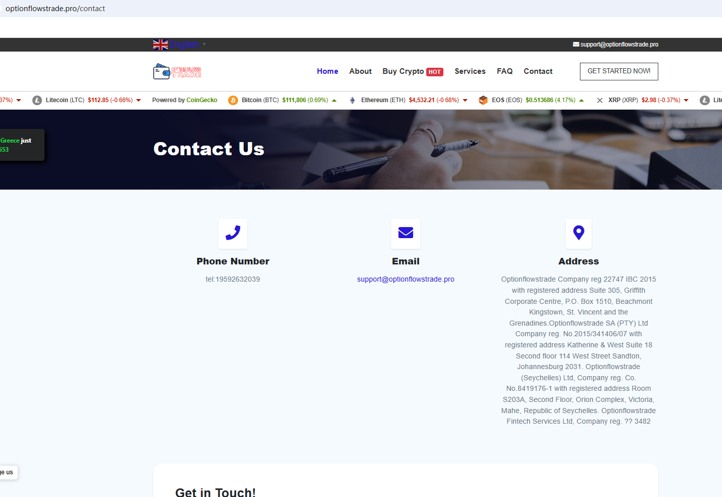 • Aug 27, 2025 BrokersView has found that Optionflowstrade appears to be a scamAccording to its website, it claims to be regulated by multiple regulators. It is well known that the St. Vincent and the Grenadines Financial Services Authority (SVG FSA) does not have the authority to regulate forex. We checked the Seychelles Financial Services Authority (Seychelles FSA) but did not find any matching information. In addition, we found that the Financial Conduct Authority (FCA) issued a warning against Optionflowstrade, believing this company might be providing financial services or products without proper authorization.In essence, Optionflowstrade is not regulated by any governing body. Entrusting it with investors’ funds is highly risky, as there are no legal protections in place to safeguard the funds. Optionflowstrade appears to be a scam.